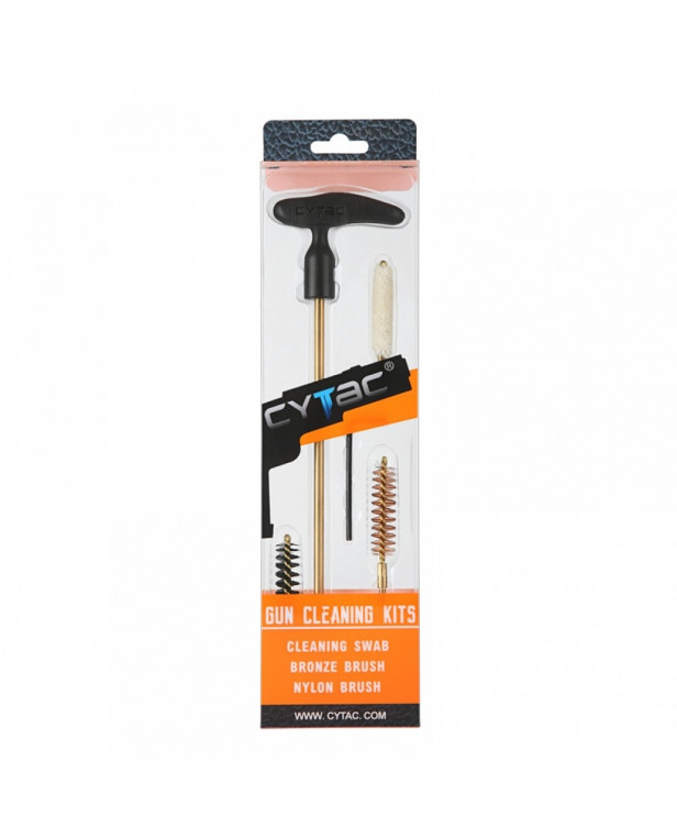 Набір для чищення Cytac CY-CK038 — практичний комплект для догляду за пістолетним спорядженням стандартного форм-фактора. Направляюча виготовлена з міді з ергономічною полімерною рукояткою для зручного захоплення. У комплекті є три типи насадок (нейлонова щітка, латунна щітка, бавовняний тампон), тримач для тканини та шестигранний ключ для складання/регулювання. Невелика вага і компактні розміри роблять набір зручним для зберігання в спорядженні або похідній аптечці.